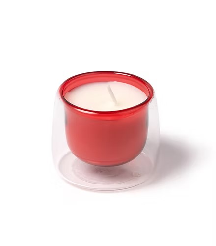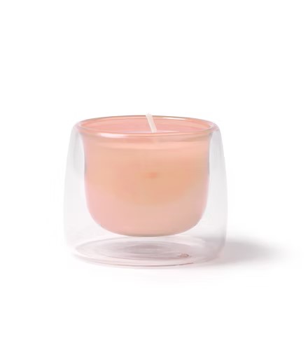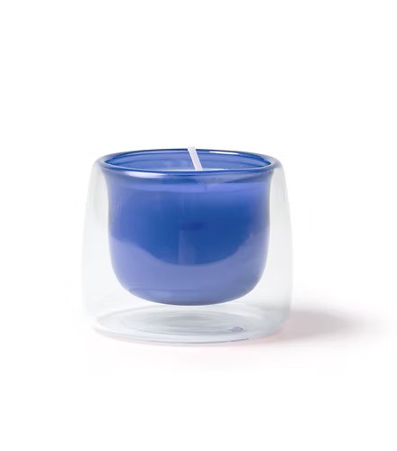 Scented candle in a double-layer glass recipient. Vegetable wax with vanilla aroma. Presentation in eco design box