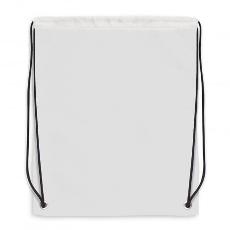 Robust medium-size drawstring backpack which is manufactured from 210D polyester and can be branded in spot colours or full colour on both sides at no extra cost. It has riveted metal eyelets at the base for added strength and black woven drawstrings. A production lead time of 20 working days applies to this product by air freight and larger orders can be sea freighted on request to reduce the freight cost.