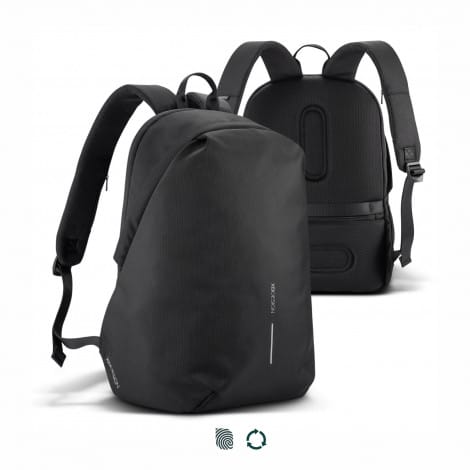 An iconic backpack developed by the innovative team at XD Design, the Bobby Soft Backpack is perfectly suited for school, work, or day trip. The anti-theft design keeps belongings secure using hidden pockets with RFID protection and hidden zippers. The main compartment can only be accessed from the back of the backpack and includes a padded sleeve to fit a 15.6 inch laptop as well as various sleeves and mesh pockets for organised storage solutions. Bobby is full of features to make life easier on the go, including an integrated USB charging port, a keychain clip, reflective safety strips and uses RPET materials. Each Bobby Soft Backpack saves 22L of water and reuses 37 plastic bottles. The Bobby Soft Backpack has an AWARE tracer, using a physical tracer and blockchain technology to ensure the use of genuine recycled fabric materials and water reduction is guaranteed.