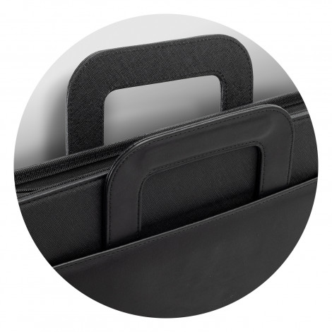 PU portfolio with foldaway away handles and zippered closure