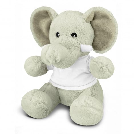 Soft elephant plush toy with embroidered eyes, RPET filling and a polyester t-shirt which is available in eleven colours. Plush animals provide a cute and cuddly branding option and are great for brand recognition and spreading goodwill. They have also been manufactured to meet AS/NZS Safety Toy Standards.
