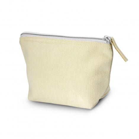 Small cosmetic bag with a zippered closure which is manufactured from robust 400gsm unbleached natural cotton canvas.