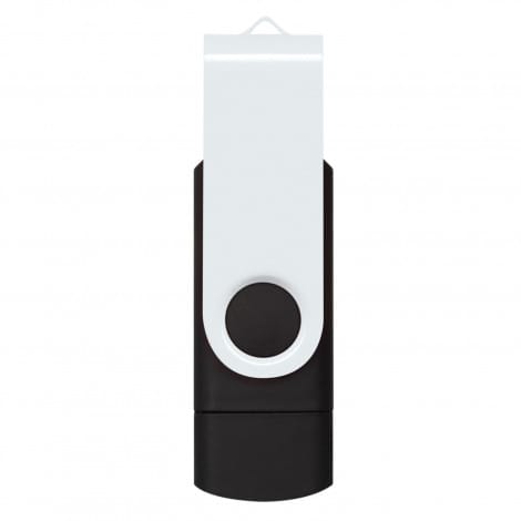 Classic 16GB flash drive with an aluminium swivel and a soft touch rubber lacquered case. It has a USB Type-A connector on one side and a USB Type-C connector on the other. Helix has a read speed of 10MB/s and a write speed of 3MB/s, with data uploading available on request.