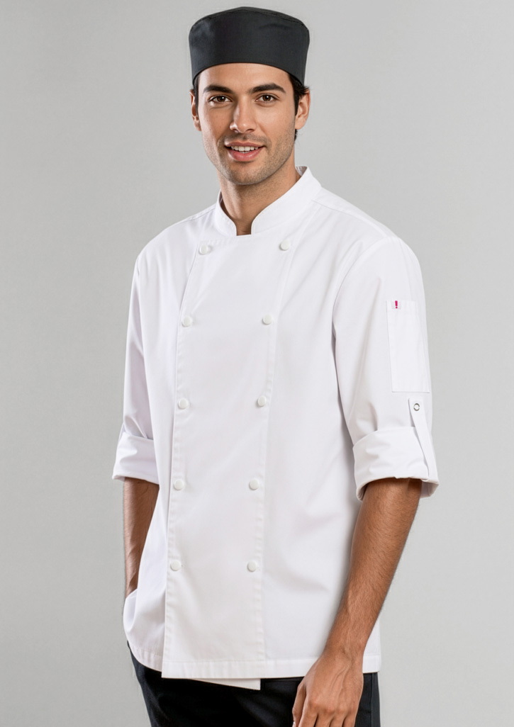 A pure cotton chef’s jacket that is simple, stylish, and durable for everyday kitchen wear.