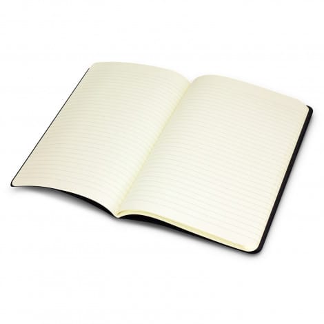 Moleskine is the legendary notebook, used by European artists for the past two centuries, from Van Gogh and Matisse to Picasso. The A5 Cahier Journal features 40 leaves (80 pages) of 70 gsm Moleskine ivory-coloured lined paper with rounded edges. The last 16 pages are perforated so notes can easily be taken out and shared. The back pocket provides space for storing notes throughout the day and includes the history of Moleskine. The Moleskine logo is subtly debossed on the back cover. Please note this product cannot be supplied without the Moleskine logo. Moleskine reserves the right to decline any custom project or artwork that does not align with their brand on a case-by-case basis.