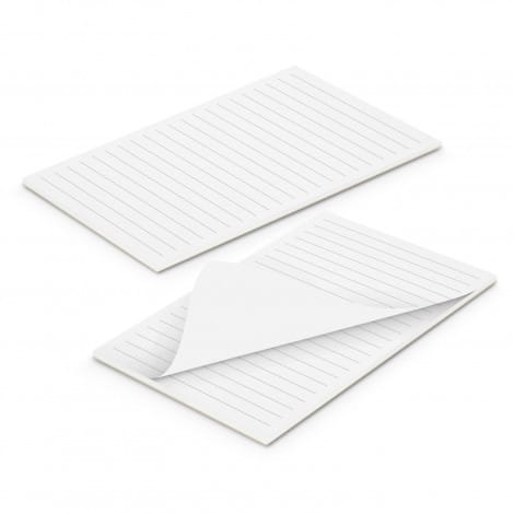 Very affordable 90mm x 160mm size note pad which has 25 leaves of 70gsm paper with lines on one side. It is padded at the top and has an unbleached cardboard back. This product cannot be branded and more stock is available within 25 working days.