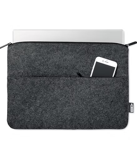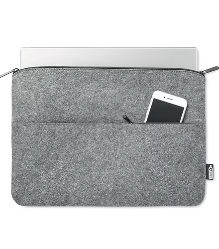 Explore our RPET felt 14-inch zippered laptop bag, a sustainable choice for the eco-friendly professional. This protective sleeve is perfect for carrying your laptop or tablet, featuring a convenient zippered front pocket for easy storage of smaller items like pens or notes. Ideal for office use, this bag is not just functional but also a statement in environmental responsibility, as it’s made from recycled PET plastic. Keep your tech safe and your essentials organized, all while supporting a greener planet with this stylish, recycled laptop bag!