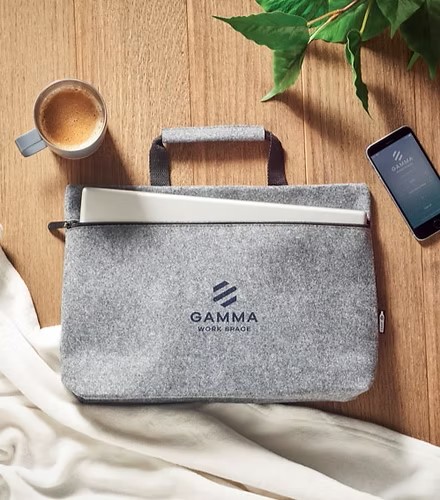 Introducing our sleek RPET felt 15-inch laptop bag, designed for the modern eco-conscious individual. This bag is crafted from RPET felt, emphasizing sustainability and durability. It features a zippered main compartment, ensuring your laptop stays secure and protected, along with an additional inner pocket for extra storage. Perfect for keeping your tech essentials safe on the go, this bag combines functionality, environmental responsibility, and style seamlessly. Ideal for anyone looking to make a green statement without compromising on design!
