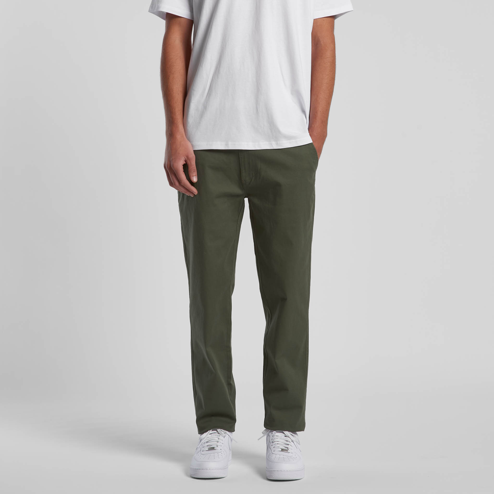 Chino pants, 2 side pockets, jet pockets at back, belt loops on waist, button closure, anti-brass metal YKK zip fly, preshrunk to minimise shrinkage