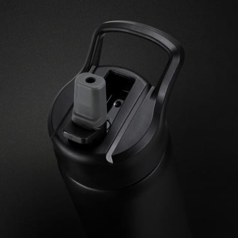 Stylish Swiss Peak 750ml double wall, vacuum insulated stainless steel drink bottle with a smart powder coated finish. It has a secure screw-on lid with a carry handle and a flip-out drinking valve. The valve has a removable silicone mouthpiece for easy cleaning. This precision bottle is BPA-free, and laser engraves to a shiny steel finish. It is presented in a Swiss Peak gift box with an information leaflet. This product is not dishwasher safe, and handwashing is recommended.