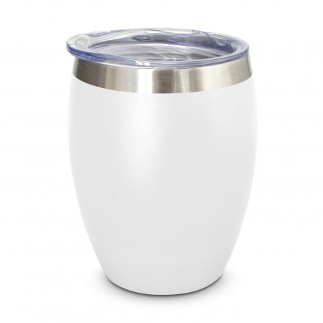 Premium 300ml double wall, vacuum insulated stainless steel coffee cup with a stunning powder coated finish. It has a transparent push on slider lid and will keep drinks hot or cold for hours. Verona is BPA-free, laser engraves to a shiny steel finish and is presented in a black gift box. This product is not dishwasher safe and handwashing is recommended.