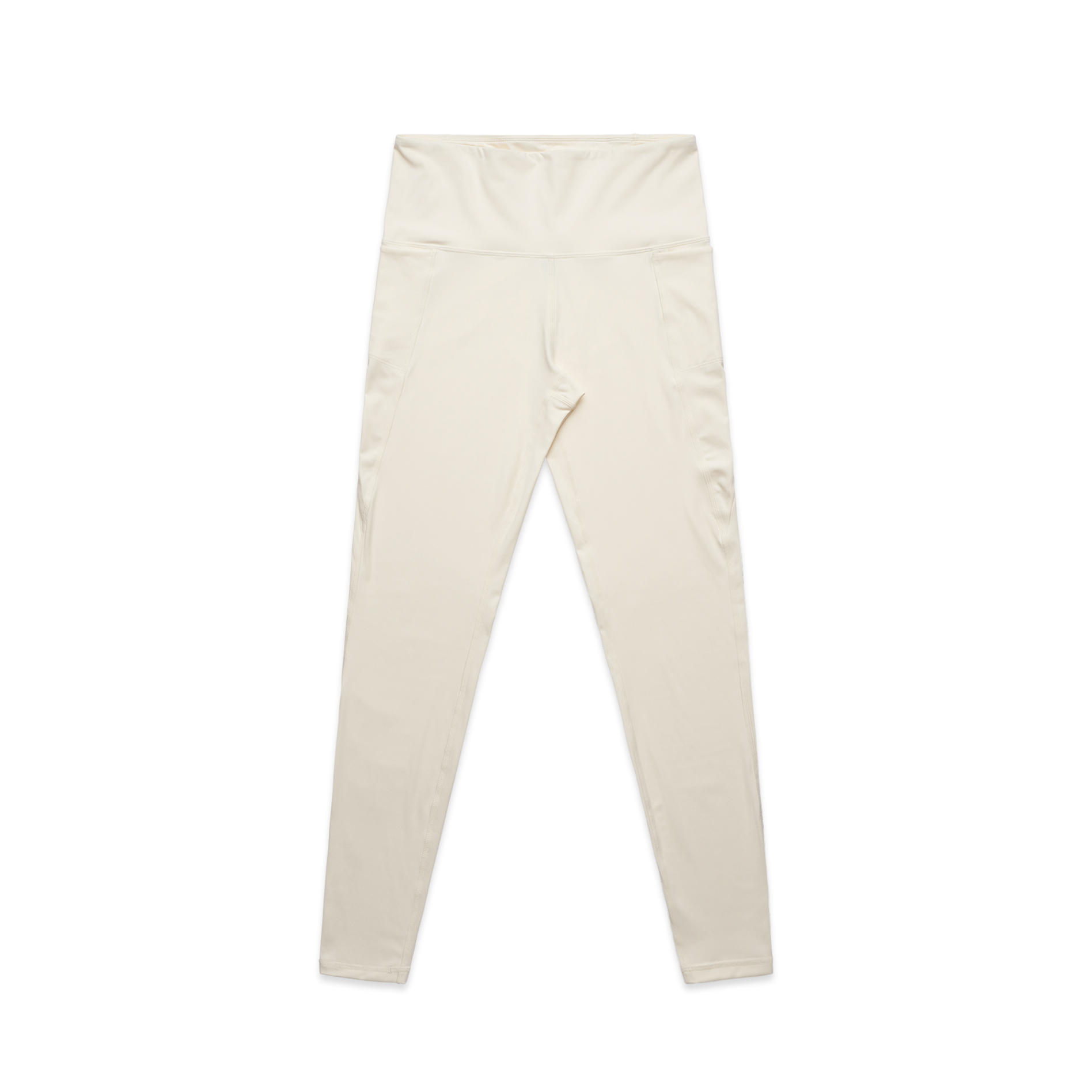 Matte finish, 7/8 length, high waist, 2 x side pockets, contour seam detailing, moisture wicking, quick drying, high elastane content for resilience, suitable for low to medium impact activities