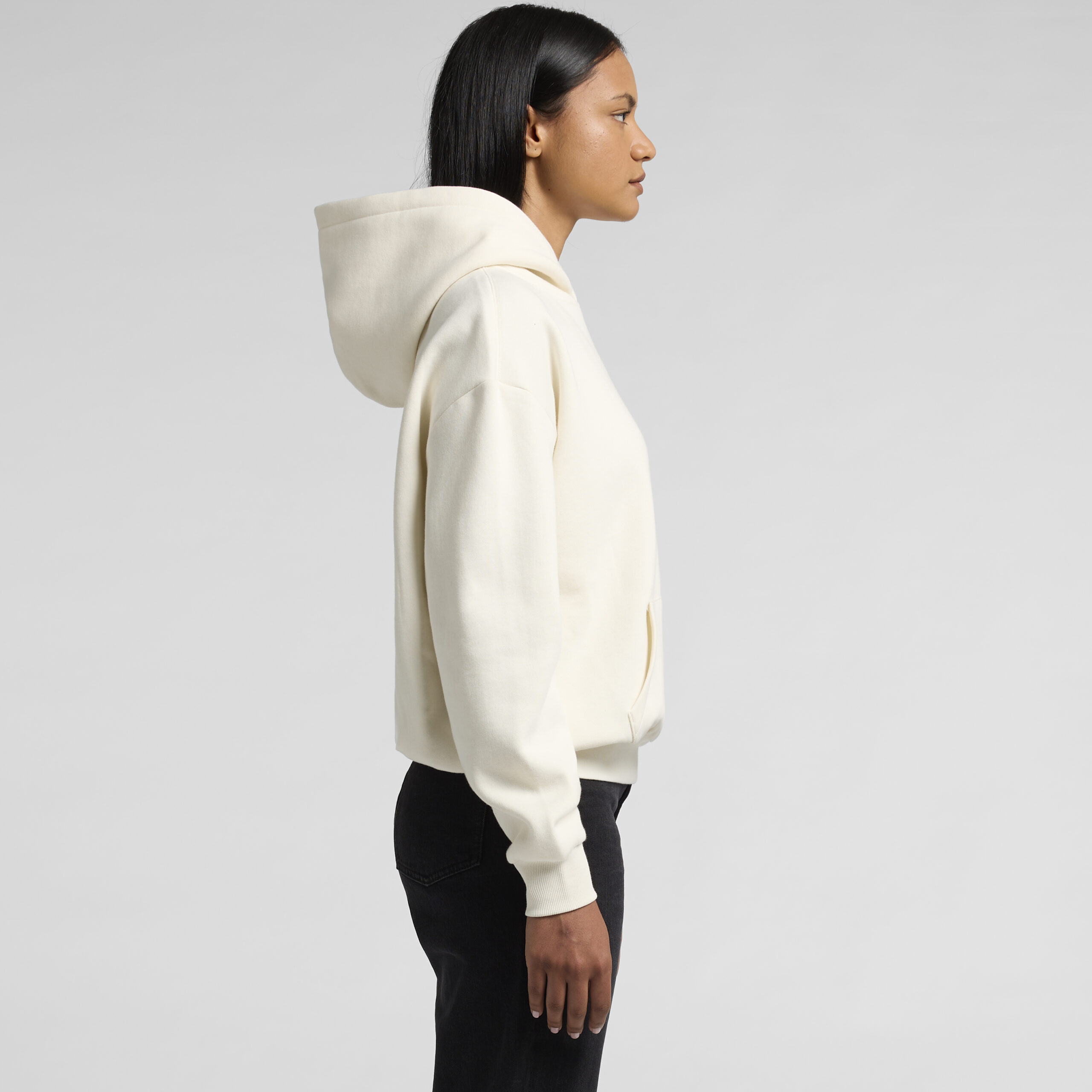 Pullover hood, drop shoulder, inset sleeves, kangaroo pocket, no drawcord, hem and sleeve 2×2 ribbing, self-fabric lined hood, preshrunk to minimise shrinkage
